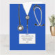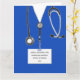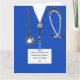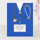 Creative nursing school graduation card featuring blue hospital scrubs. To personalize edit text to add nurse's name, university and year.