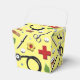 Creative medical-themed nursing school grad party favor boxes featuring healthcare supplies and flowers. Edit text to customize.