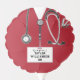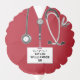 Creative nursing school graduation party decor and nurse gift featuring hospital scrubs and a stethoscope. To personalize, edit text to add her or his name.