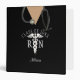Keep organized using this Nurse Graduation Black Scrub Top Fun Personalized 3 ring binder. It is designed on both sides with a customizable black background, white caduceus symbol and "RN" on the center. The nurse's graduation year is "class of" curved over the symbol. Name is in white script lettering across the lower area and a stethoscope is around the neck.