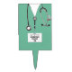 Creative nursing school graduation party decoration featuring hospital scrubs, stethoscope, and Swiss Army Knife. Edit text to add nurse's name.