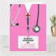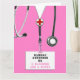 Nursing school graduation card featuring pink hospital scrubs. To personalize edit text to add name of nurse grad.