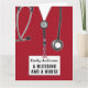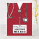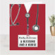 Personalized nursing school graduation card template featuring red hospital scrubs and funny quote. Edit text to add name of nurse.