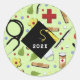 Creative nurse graduation gift stickers, party favor labels and envelope seals featuring nursing supplies and a black and gold graduation cap designed for nurse or doctor's graduation celebration. Edit text to customize.