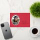 This graduation thank you card features a gold foil, black and white oval to highlight the graduate's portrait. A bold script Thank You also in foil is simply elegant on the red faux linen card. Details of the graduation appear on the front. The back is the same red faux linen.