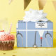 Creative nurse gift wrap or party decoration featuring blue hospital scrubs and stethoscope illustration. Edit text to add nursing school grad's name.