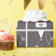 Creative nurse graduation gift wrap featuring gray hospital scrubs, stethoscope and Swiss Army knife illustration. To personalize edit text to add name of nurse.