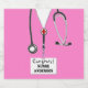 Personalized nursing school graduation labels, gift stickers or grad party decoration featuring pink scrubs. To personalize edit text to add nurse's name.