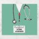 Personalized nurse graduation gift labels and nursing school grad party decoration featuring hospital scrubs. Edit text to add nurse's name.