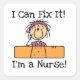 A stick figure nurse with a big bandage and text that reads "I Can Fix It! I'm a Nurse!" on nurse T-shirts, hoodies, tote bags, magnets, mugs, keychains, cards, and other nurse apparel and gifts.