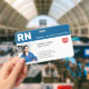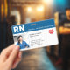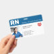 A clean and professional ID badge design created for healthcare settings. This layout features a bold RN header, customizable name and credentials, and space for a photo to create a polished and trustworthy first impression.