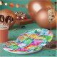 I ordered personalized baby shower plates and I loved them and they were delivered on time they were personalized with thanks for showering our little peanut. The printing turned out good but edge of plates had like tears around the edges I would recommend them to any one having a baby shower or party