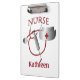 A graphic nurse design by artist/designer Charmaine Paulson on a clipboard. The clipboard has a customizable text template for your personalization.