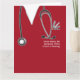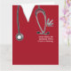Amusing nursing school graduation card featuring red hospital scrubs illustration. Edit text to personalize for your favorite nurse.
