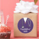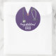 Creative nursing school congrats stickers for graduation gifts, party favor labels and envelope seals featuring purple hospital scrubs and a stethoscope illustration. To personalize, edit text.