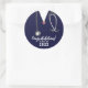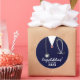 Nursing school grad congrats stickers featuring navy blue hospital scrubs and a stethoscope illustration for party favors, gifts and envelope seals. To personalize, edit text.