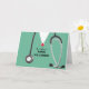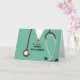 Creative nursing school graduation card featuring medical scrubs design. To personalize edit text to add name of your favorite nurse.