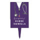 Unique nursing school graduation party cake decoration featuring creative purple hospital scrubs, stethoscope and congratulations. Edit text to add name of nurse grad.