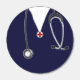 Creative nursing school graduation or nurse appreciation party favors featuring stethoscope and navy blue scrubs.