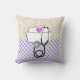 Nurse Pillow with apothecary abbreviations, stethoscope and nurse cap on front and angels quote on the back. Color of pillow in 2 shades of purple. Perfect for nurse graduation and nurse retirement gifts.