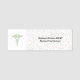 Stylish medical name tags created with a caduceus symbol, trendy designer inspired pattern in the background and name space for a medical professional in the healthcare field at a hospital, doctor office, or medical facility.