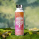 Nurse Practitioner NP Pink Medical Personalized Water Bottle. The background is modern designed with pink and orange watercolor like ombre. A white medical caduceus symbol and "NP" in bold white lettering are on the center. Name is in white trendy hand lettered script.