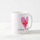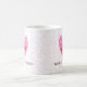 This whimsical coffee mug is a unique personalized gift to give to your favorite nurse featuring a pink heart with a pattern of red in the center and another smaller heart with a background pattern of pink hearts. Personalize with a name. Designed by world renowned artist ©Tim Coffey.