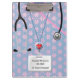 A personalized clipboard with medical gear in a nursing professional's pockets. A nurse's pockets are always full! An excellent gift for the nursing graduate or the experienced nurse. An added bonus of a double sided design. All text boxes do not need to be filled out. Delete text if not needed. Fun and creative! Specific medical profession requests, please contact Night Owl's Menagerie. Original art by Night Owl's Menagerie, 2015.