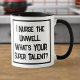 Funny slogan on a mug that says "I Nurse the Unwell. what's YOUR super talent?". Two Tone Mug for a Nurse. Black and white bold text.