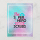 Add a name or other text to personalize this fun modern gift for nurses which reads 'this superhero wears scrubs'. Pink and blue typography.