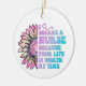 Pretty design ceramic ornament with a big flower and multi colors text in shades of lavender and blue that reads I Became a Nurse Because Your Life is Worth My Time!