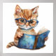 Nursery Art Poster Cat Reading with Eyeglasses