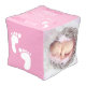 I've enjoyed giving personalized pillows with baby's birth details to family and friends. Their reaction to such a thoughtful gift is priceless. This pouf pillow cube now includes a way to personalize my best selling baby birth detail design in pastel pink hues and grey – colors can be changed up using the "customize further' feature on Zazzle as desired. Include an area for your baby girl's photo. Modern script fonts for "baby girl", footprint illustrations too. A fun and unique gift for new parents.