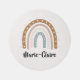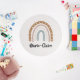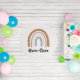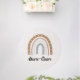 Cute boho nursery rug with a gender neutral rainbow. Unique home decor for nursery and kids room.