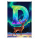 Nursery Letter D Name Northern Lights Deer Baby Poster