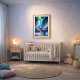Featuring glowing aurora color, snowy landscape, and an alert jackrabbit, this piece brings a lively and nature-inspired atmosphere to the room.