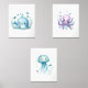 This charming set of ocean-themed artwork features three beloved sea creatures: a jellyfish, an octopus, and a whale. The soft colors and whimsical designs make these prints a delightful addition to any space, especially a child's room or nursery.
