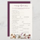 The Nursery Rhyme Baby Game features exquisite hand-painted watercolor wildflowers in shades of burgundy, gold, cream, and purple, complemented by lush greenery. Ideal for any season, the wildflowers are arranged in a stunning side bouquet, offering a modern and fresh aesthetic. With a burgundy pattern on the back, this game card combines versatility and sophistication, providing a fun and stylish activity for your baby shower guests to enjoy.
