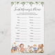 Safari animals themed baby shower finish mommy's phrase game card features a watercolor nursery illustration and watercolor greenery eucalyptus garland and elegant handwritten style font.