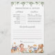 Nursery rhymes themed baby shower predictions and advice game card features a watercolor nursery rhymes illustration and watercolor greenery eucalyptus garland and elegant handwritten style font.