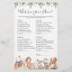 Nursery rhymes themed baby shower what's in your phone game card features a watercolor nursery rhymes illustration and watercolor greenery eucalyptus garland and elegant handwritten style font.