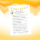 A fun game for the baby shower is the Nursery rhymes game. This game features a yellow banner at top and a teddy bear with a bee. On the reverse is a boy teddy bear leaning on a honey barrel watching a honey bee with templates.