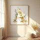 Delicate Romantic Floral A Letter in Gold Glitter Effect Posters for Nursery Decor.
