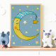 Nursery Wall Art Moon Stars Yellow Blue Poster