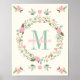Monogram nursery poster with personalized monogram and name, nursery wall art print with floral decoration. You can change the background color, but I will list this with 2 other backgrounds, ready-to-buy, too.