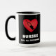 Here’s a mug that any nurse would love to have their coffee in. This design has a red heart with a shot and text that reads “NURSES CALL ALL THE SHOTS”. The handle and inside of the mug are black.