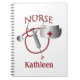 A graphic nurse design by artist/designer Charmaine Paulson on a notebook. The notebook has a customizable text template for your personalization.