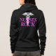 Durable, warm, comfortable. Zipper is a bit heavy, should have been nylon, but functions as it should otherwise. Color on front could have been bolder, but may be due to my font choice and frame choice. Seems to be holding up well despite multiple washings.