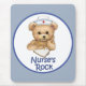 Cute teddybear Nurse wearing a nurse cap and making notes on a clipboard. Text says Nurse's Rock.