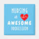 This typography nurse magnet has a message which most nurses find to be true. Wear it proudly! It has a light blue background and a red heart with an EKG complex on it.